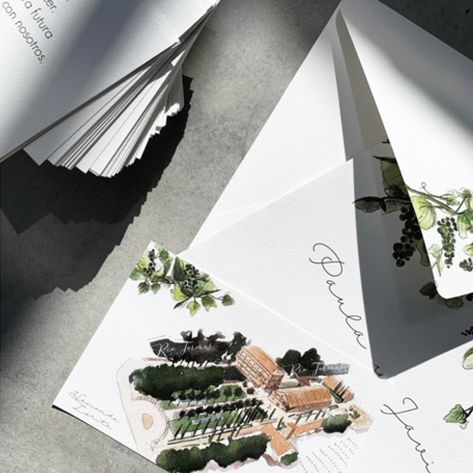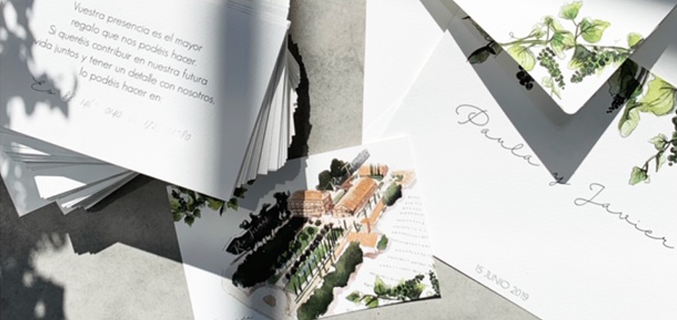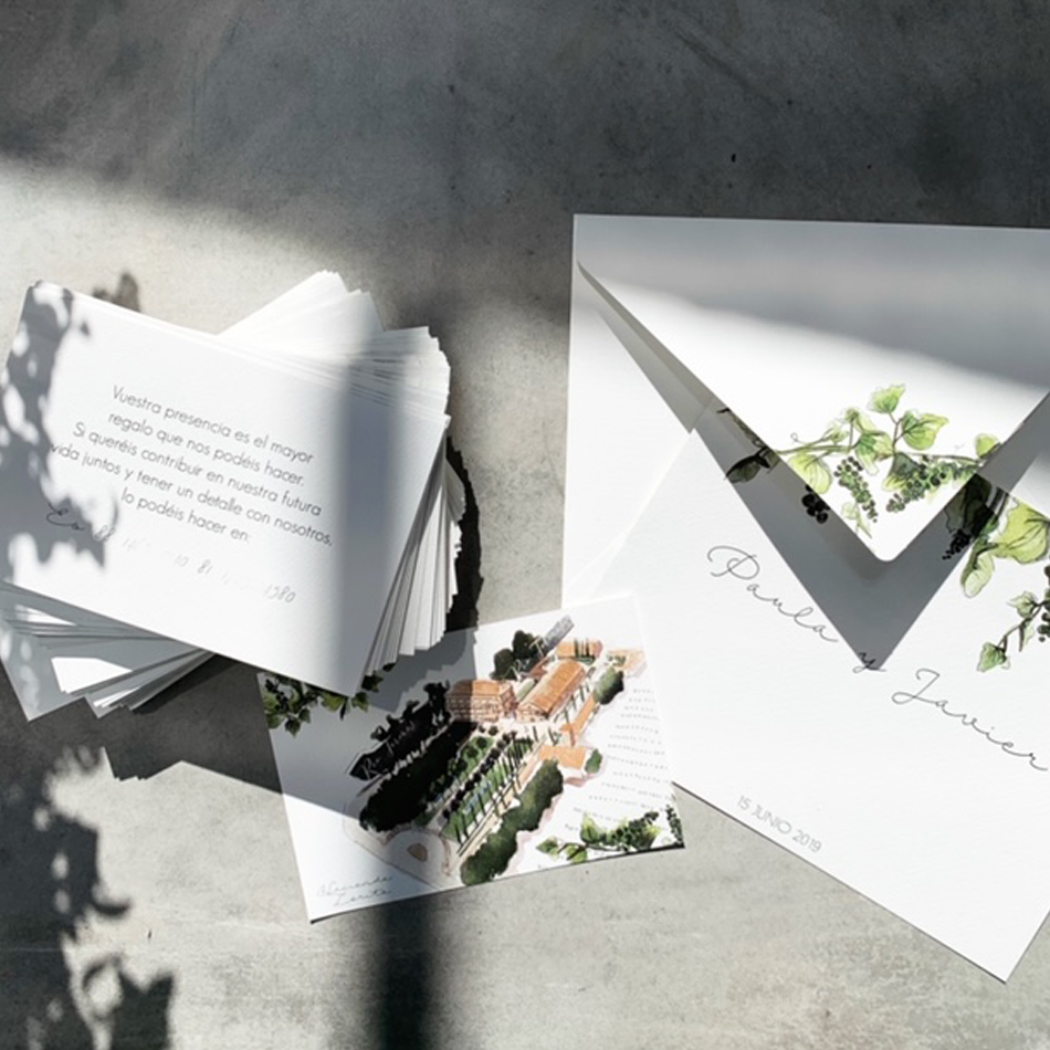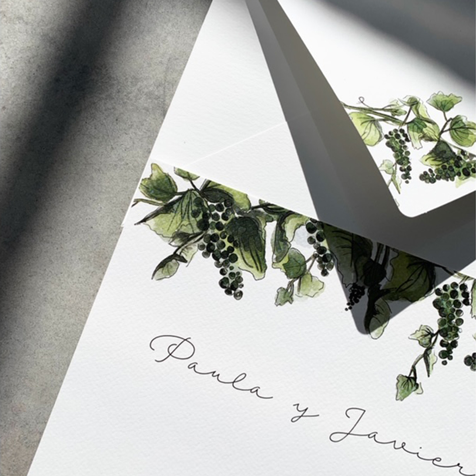 Las invitaciones de la colección llevan tarjetón y sobre impreso.